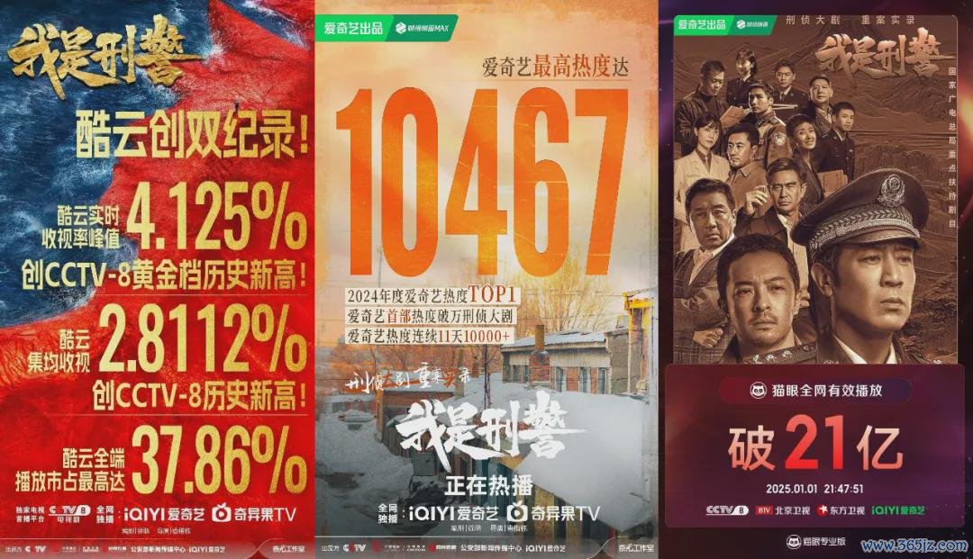 《我是刑警》11月27日登陆央视八套首播,爱奇艺同步播出,以酷云及时收视率峰值4.125%创下央视八套黄金档历史新高,以酷云集均收视2.8112%创下央视八套历史新高;在爱奇艺站内皆集11天热度破万,成为爱奇艺首部热度破万的刑侦大剧;更凭借最高达37.86%的酷云全端播放市占率,领跑年末剧集市集。随后《我是刑警》在北京卫视、东方卫视以及央视一套的二三轮播出,进一步展现出传统刑侦剧的延宕成果和长尾效应。扬弃1月1日,猫眼数据暴露,该剧全网有用播放量还是冲破21亿。