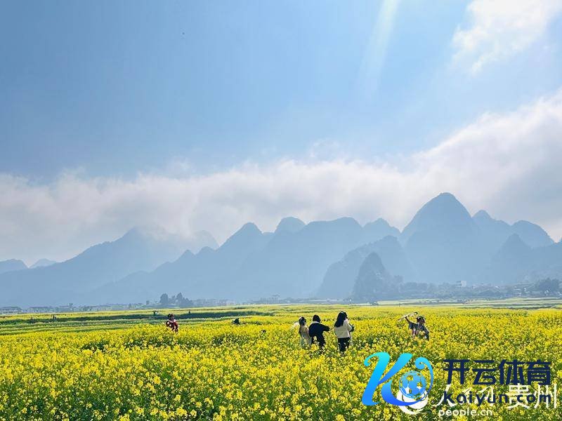 不仅如斯,蒋煦还在腊月不雅赏到了“早花”盛景。万峰林景区内,层叠的锥峰与繁芜的布依村寨之间,6000余亩油菜花鼎力铺展成了金色海洋,微风拂过,暗香袭来,绘就了一幅“阳光黔西南”的冬日画卷。