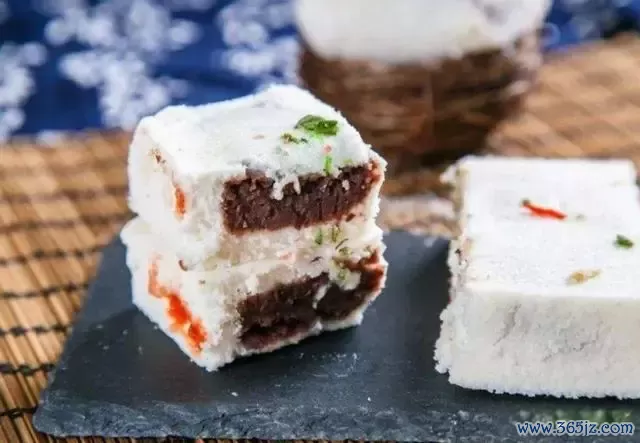 熟梨糕是天津的传统小吃,虽名曰“熟梨”,实则与梨果无涓滴拖累。它以米粉和红糖为原料,过程蒸制而成。口感软糯,甜而不腻,散漫着特别的香味,是老小皆宜的适口小吃。