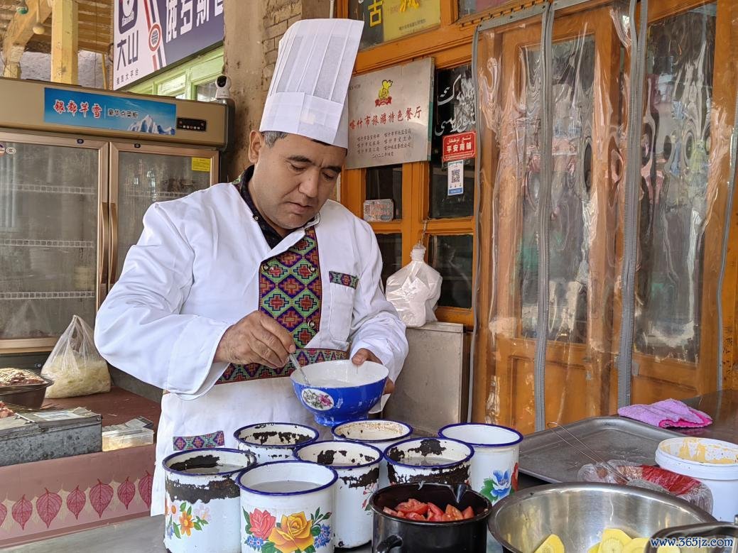 旅客不雅赏米尔孜艾合买提·阿布力米提制作缸子肉