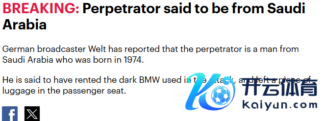 据德国 Welt 播送公司报说念,行凶者是又名来自沙特阿拉伯的须眉,生于 1974 年。