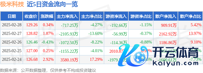 本站音问,物化2025年2月28日收盘开yun体育网,极米科技(688696)报收于129.26元,高潮0.34%,换手率1.85%,成交量1.29万手,成交额1.68亿元。