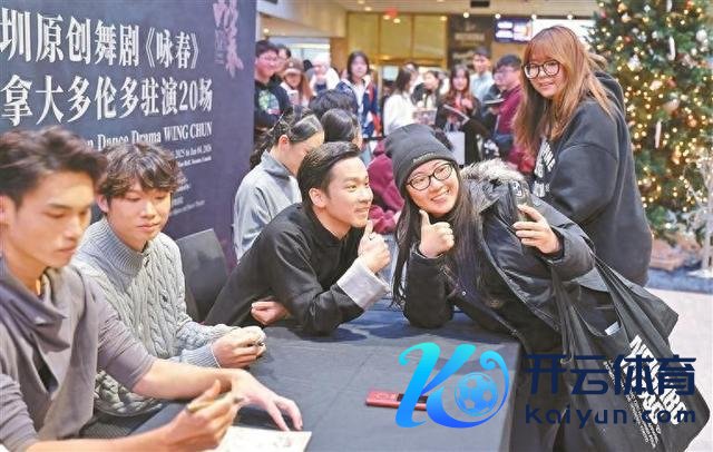 周末,加拿大多伦多梅里迪安中心东说念主气旺。不雅众争相与深圳原创舞剧《咏春》团队演员合影。